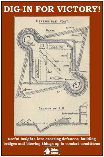 DRAK17: Dig-In For Victory! features extracts from the Royal Engineers’ Manual of Field Engineering 1911. Lots of useful information on making defences, building bridges, defending different types of locations and blowing things up. Invaluable if you’re designing a wargame set in the late 19th/early 20th centuries, but also with plenty of useful information that can be applied to other time periods and even to RPGs. Includes some great original plans for defensive positions. Download: Pay What You Want @ wargamevault.com